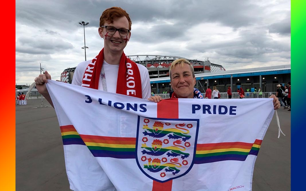 Banner is up at #WorldCup #EngPan – to the left of the England fans end goal! Appearing on your screen soon! ⚽️🏆🏳️🌈✊🏴🦁🦁🦁🌈🇷🇺 pic.twitter.com/Vvao41VMwF