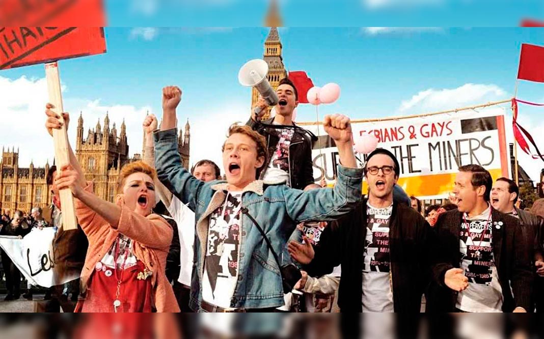 Pride película estrenada en 2014 basada en hechos reales, un grupo de activistas LGBT que apoyan a los mineros en una huelga que tuvo lugar en 1984.