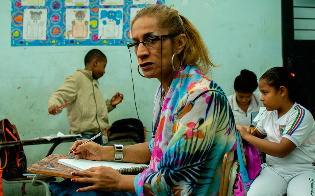 A sus 48 años de edad, Solypsi se convierte en la primera profesora trans en dar clases en un colegio público de Colombia.