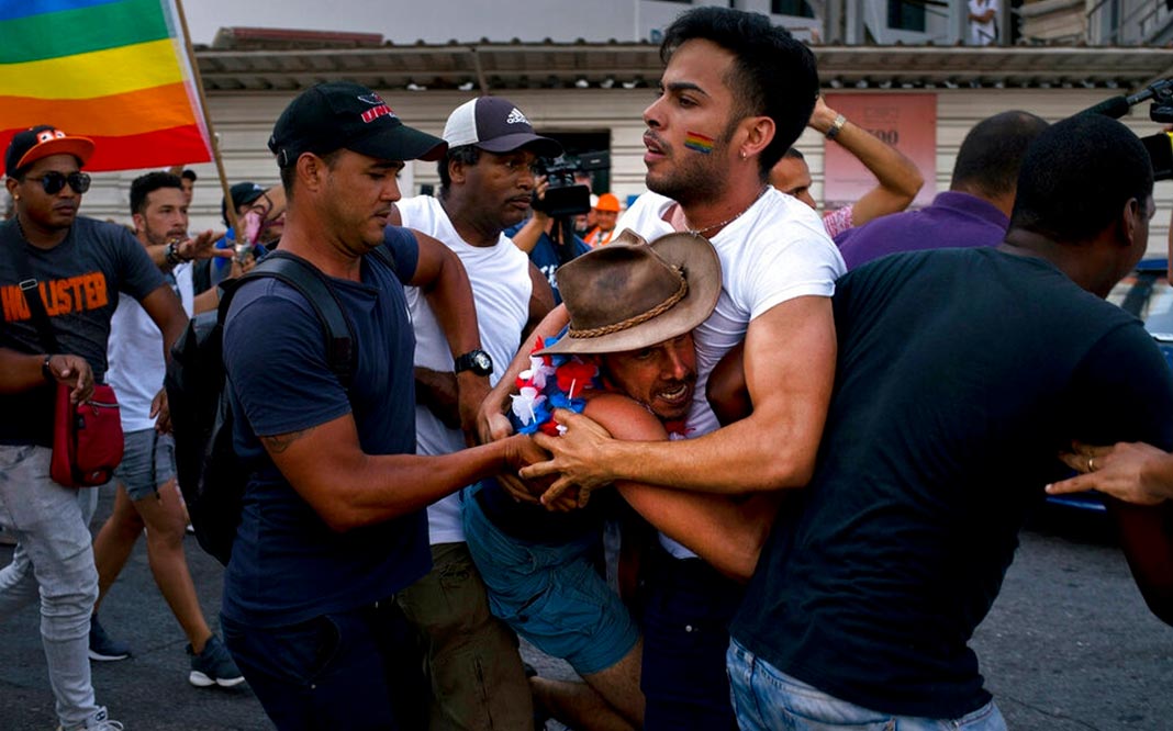 “No me parece justa (la interrupción de la marcha) para nada, porque no estamos haciendo nada malo”, dijo a la AFP Laydel Alfonso, manifestante de 31 años y trabajador de un restaurante privado, quien llevaba un antifaz plateado y la bandera del arcoiris.