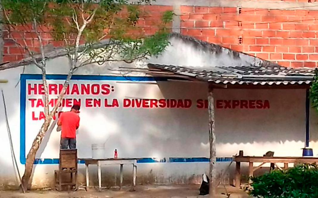 Este mensaje estaba plasmado en un muro del barrio Las Américas, en Sincelejo (Sucre) y estaba firmado por la Parroquia Cristo Rey. Este tipo de mensajes solo acentúan el odio y la discriminación de la que históricamente han sido víctimas las personas lesbianas, gais, bisexuales y trans.