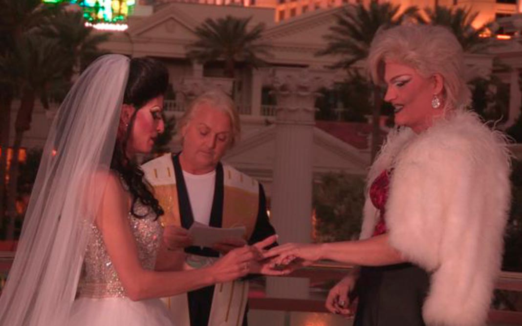 Pareja de hombres gay que trabajan como drag queen, contrajeron matrimonio en las vegas y sorprendieron con sus vestidos al decir SI.