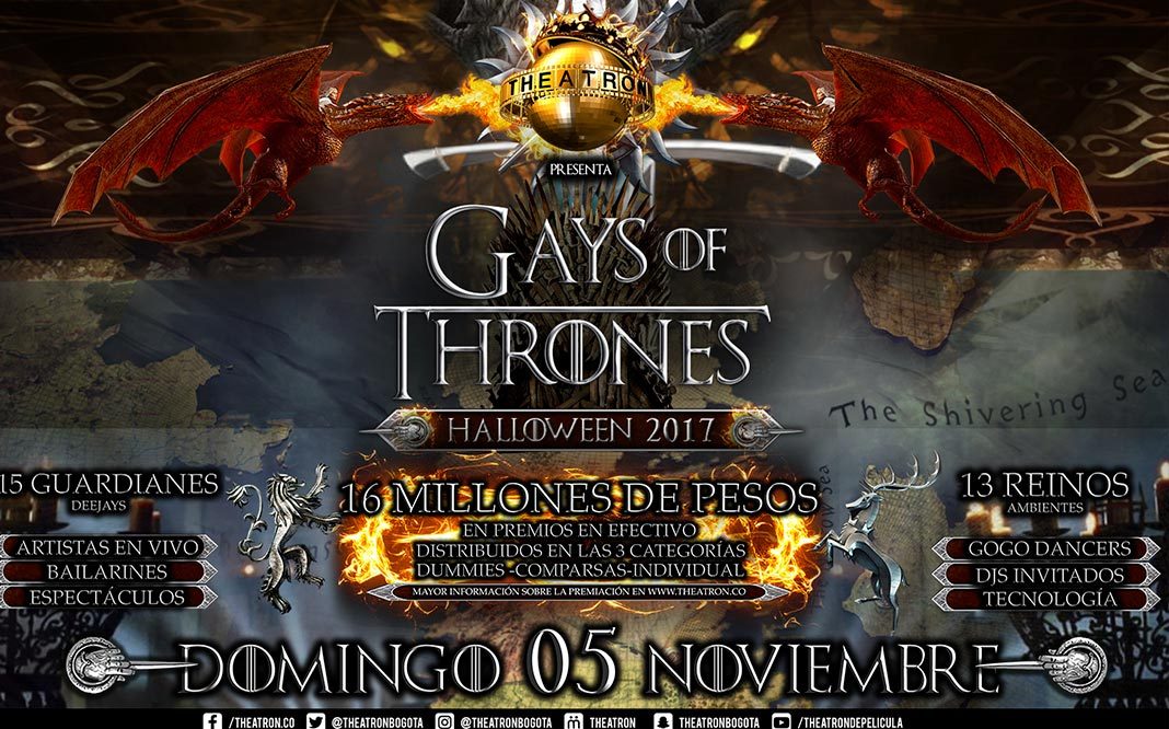 Para la celebración del Halloween 2017, Theatron tiene preparado una programación especial con un HALLOWEEKEND, bajo la producción de @fernandokoral, quien para esta versión, presenta a GAYS OF THRONES, una parodia a la afamada serie de HBO, Games of Thrones.